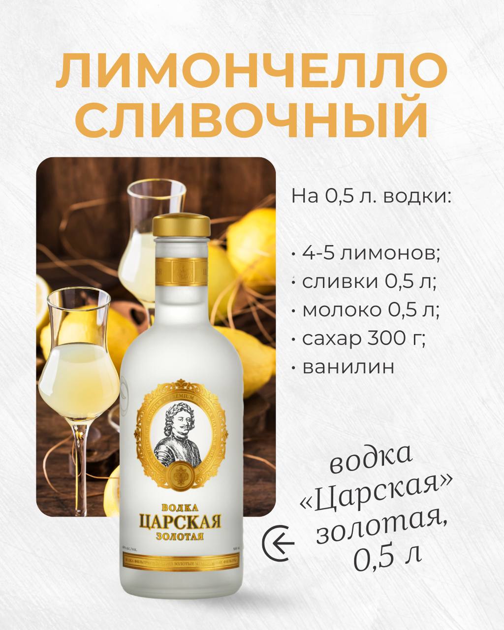 - Водка «Царская» золотая, Россия;