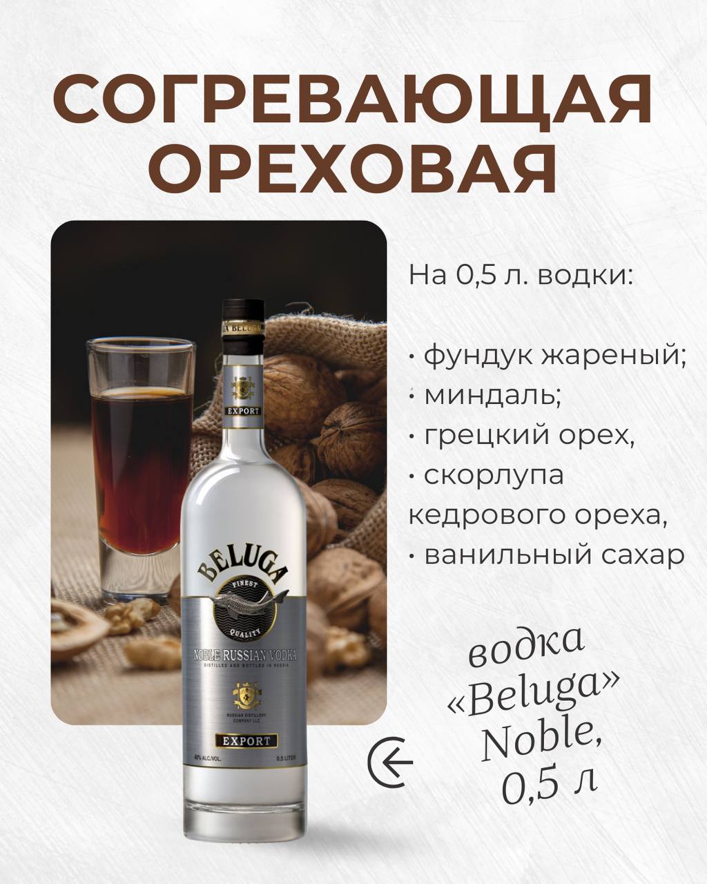 - Водка «Белуга» Нобл, Россия;